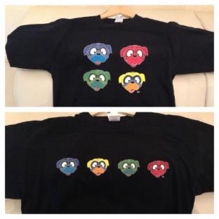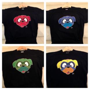 T-Shirt mit 4 bunten Mopsköpfen