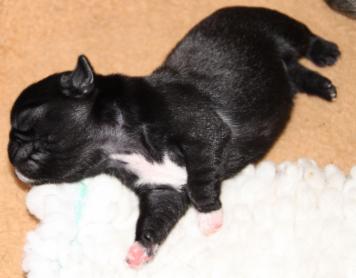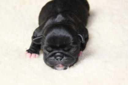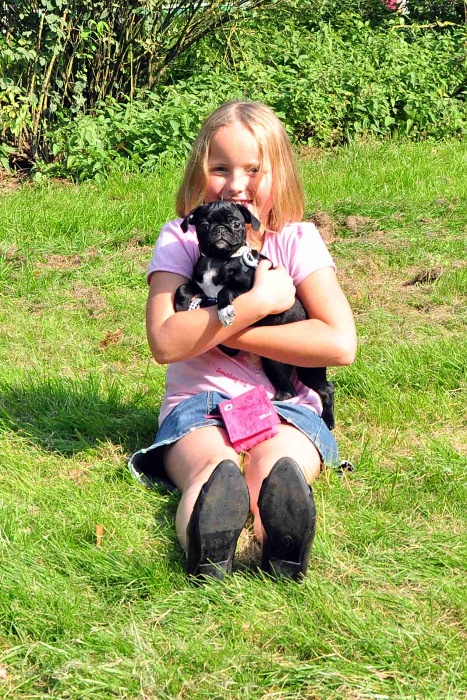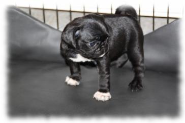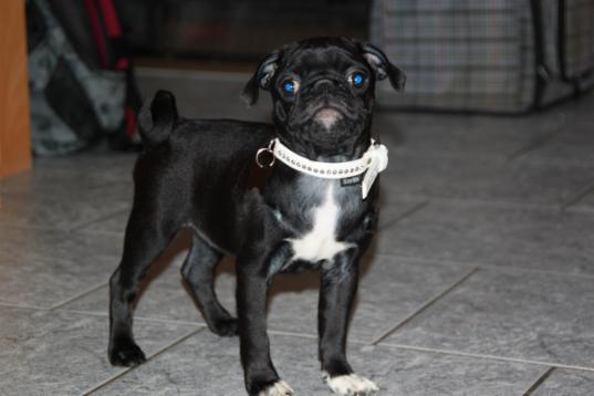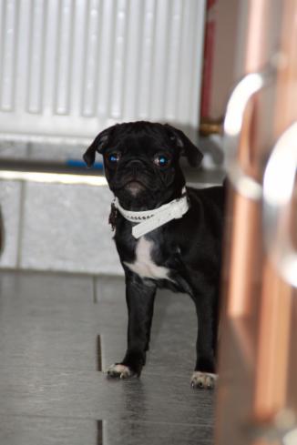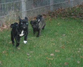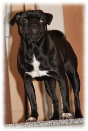 Phoebe bekam schon im ersten Wurf einen beigen Mops mit weißen Pfoten(Brutus), sowie ein schwarzer Mops mit weißen Pfoten(Baghira).