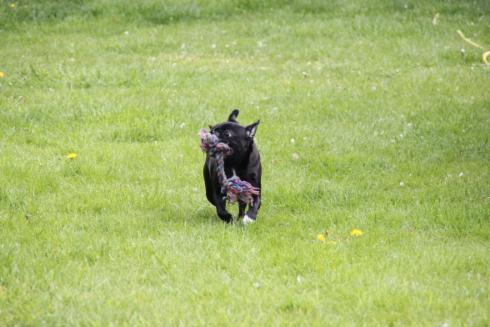 Chili rennt...und rennt....und läßt ihr Spielzeug nicht los :-)